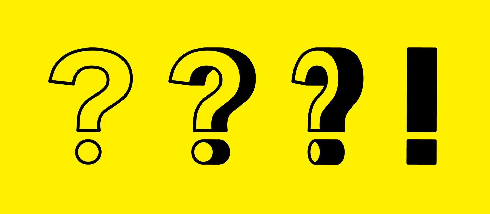 「?」の文字を立体的に捉え、横から見ると「!」になる表現で見立てています。